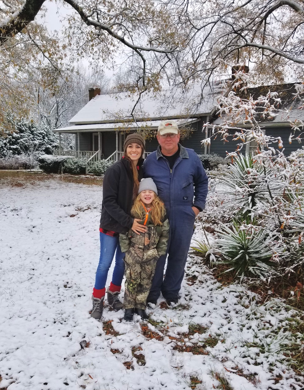 A much later winter when we at least had some snow – December 9, 2017 (pictured: Stephanie, Rick and Abigail)