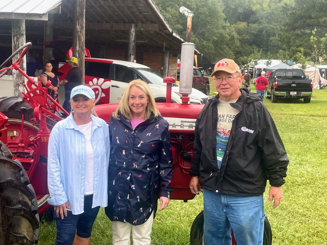 Paul’s tractor with his daughters Mary Harn (left) and Paula Caras (center)